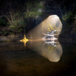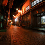 Haunting corridor in an abandoned theme park, Gluck Kingdom, with peeling wallpaper, tattered carpet, and a dimly lit chandelier casting an eerie glow over the decaying interior, evoking a sense of a once-grand, now forgotten, relic.