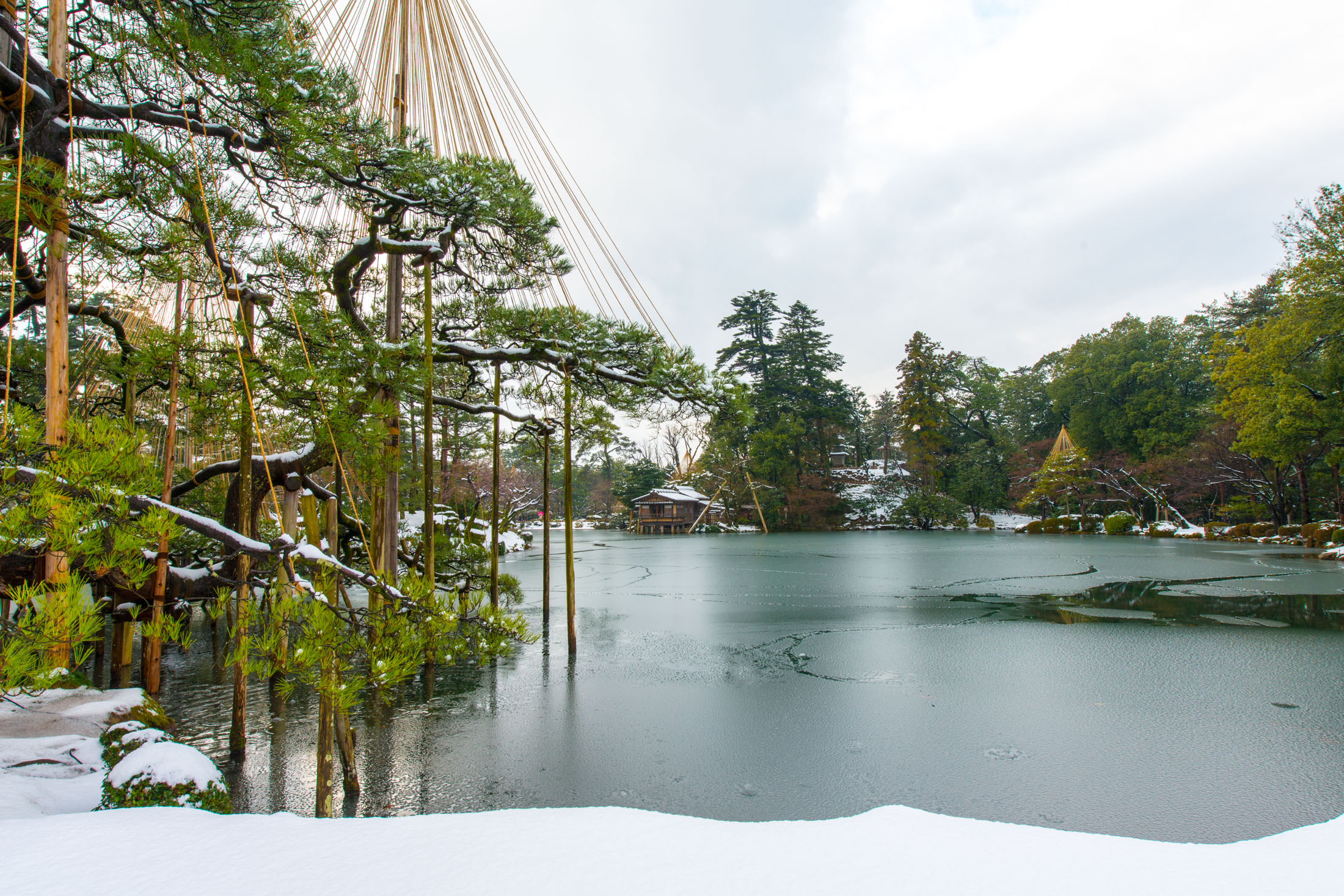 Serene Winter Scene at Kenroku-en Japanese Garden