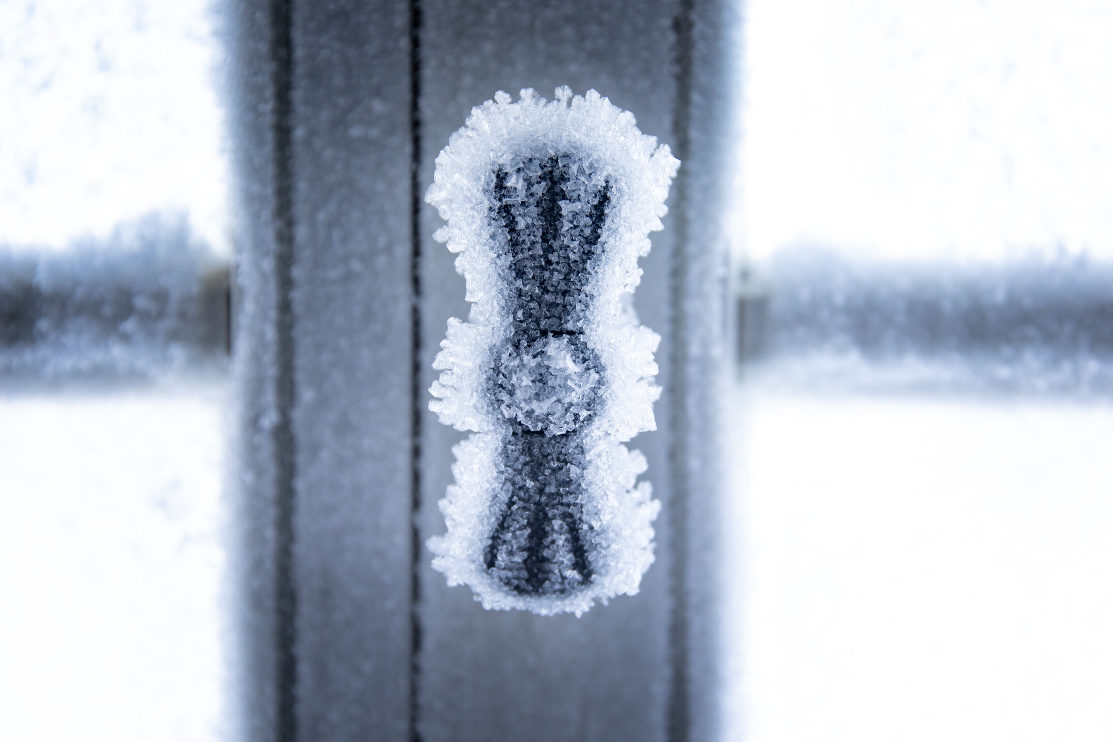 Natures Icy Artistry: Frost Transforms Abandoned Post into Enchanting Sculpture.