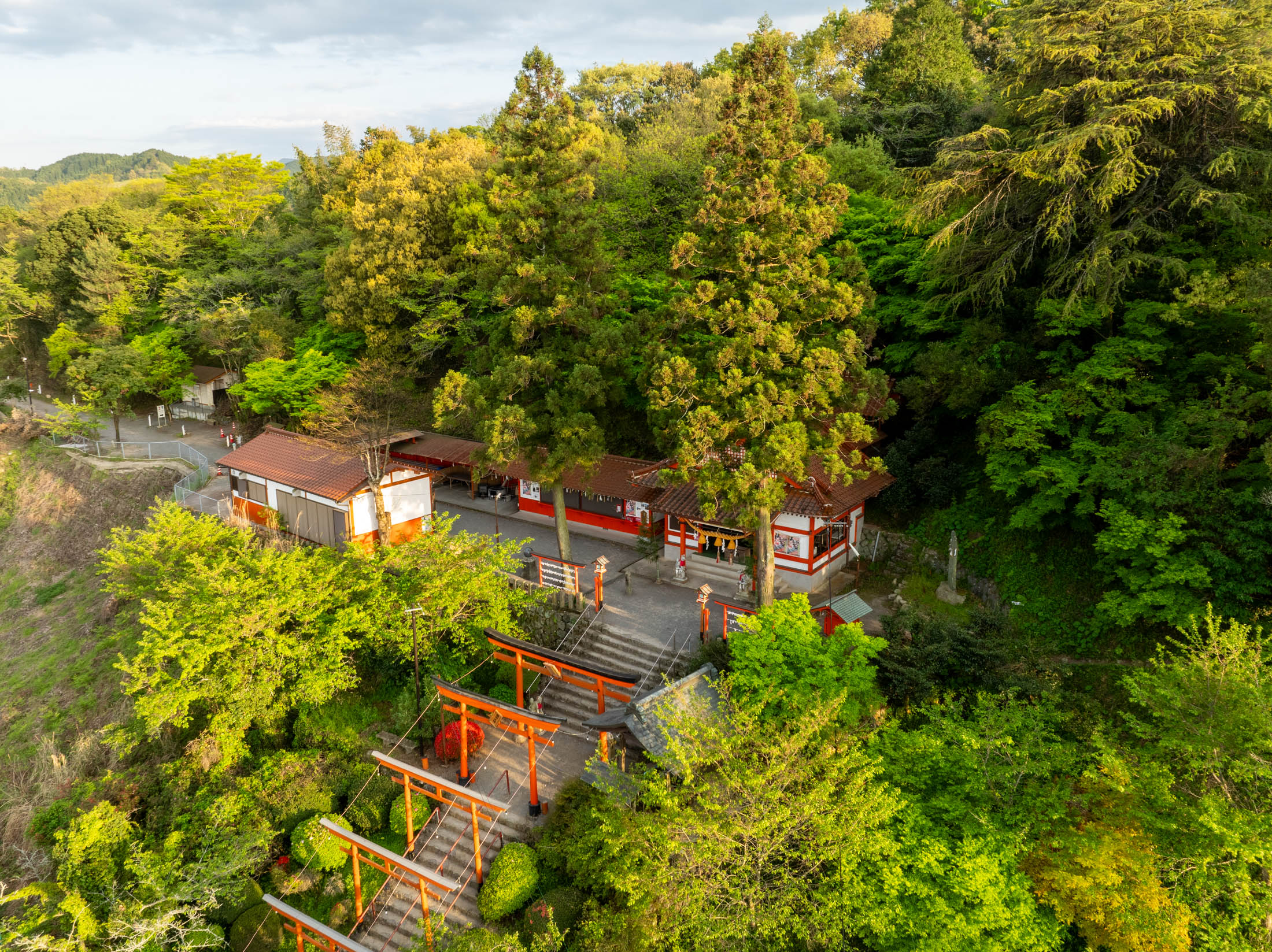 Ukiha Inari Shrine Torii Gates Overlooking Rural Valley