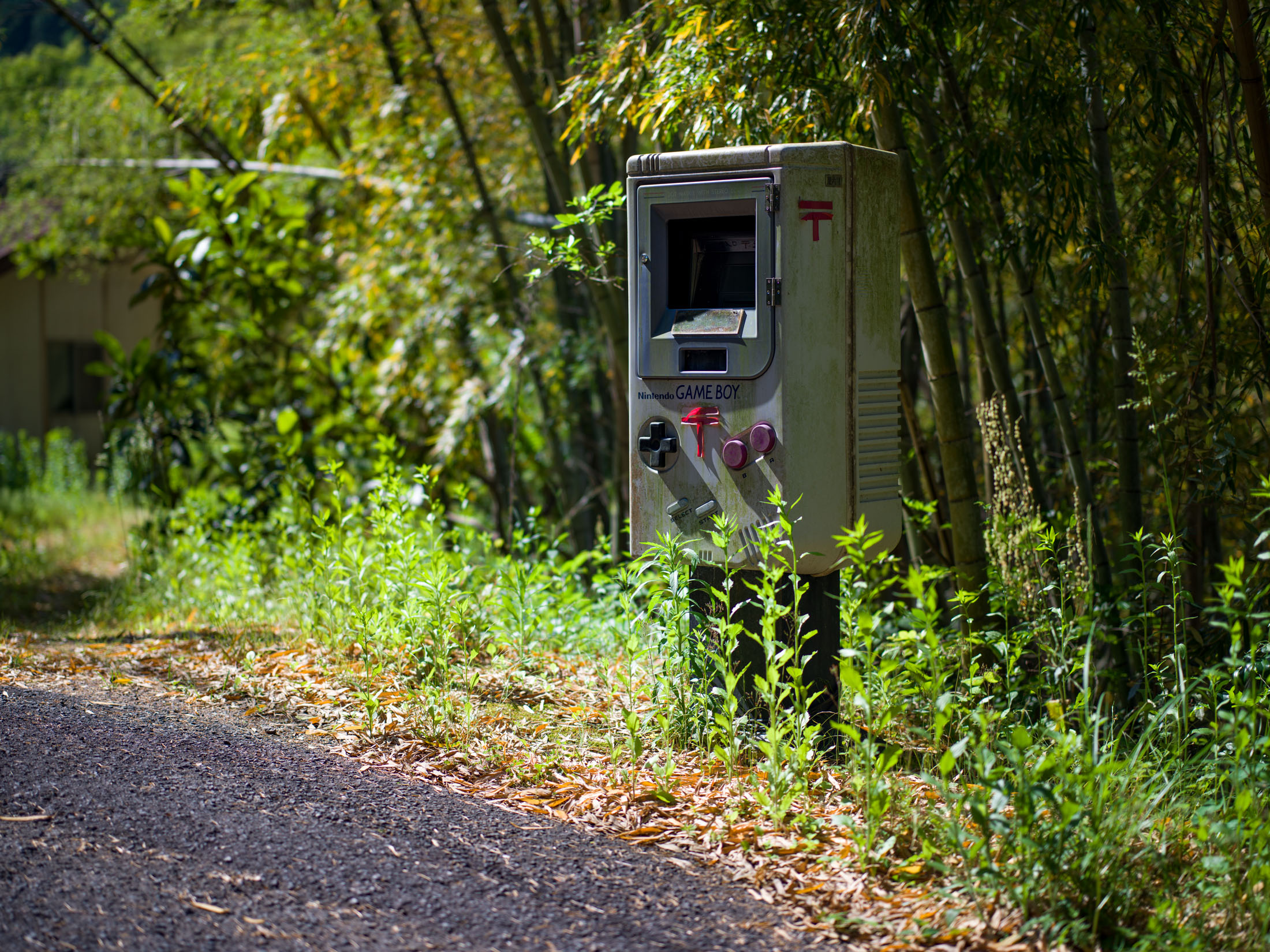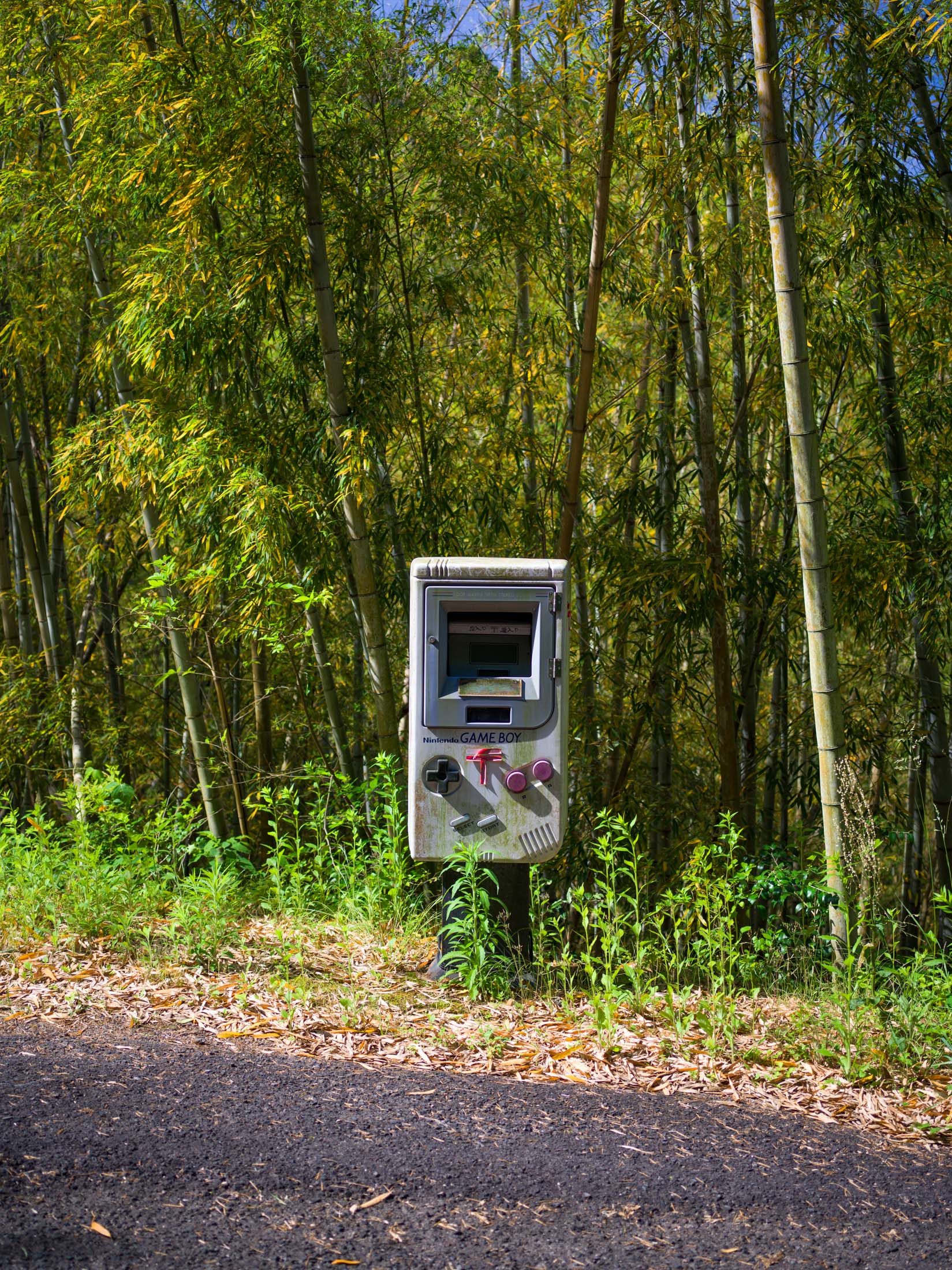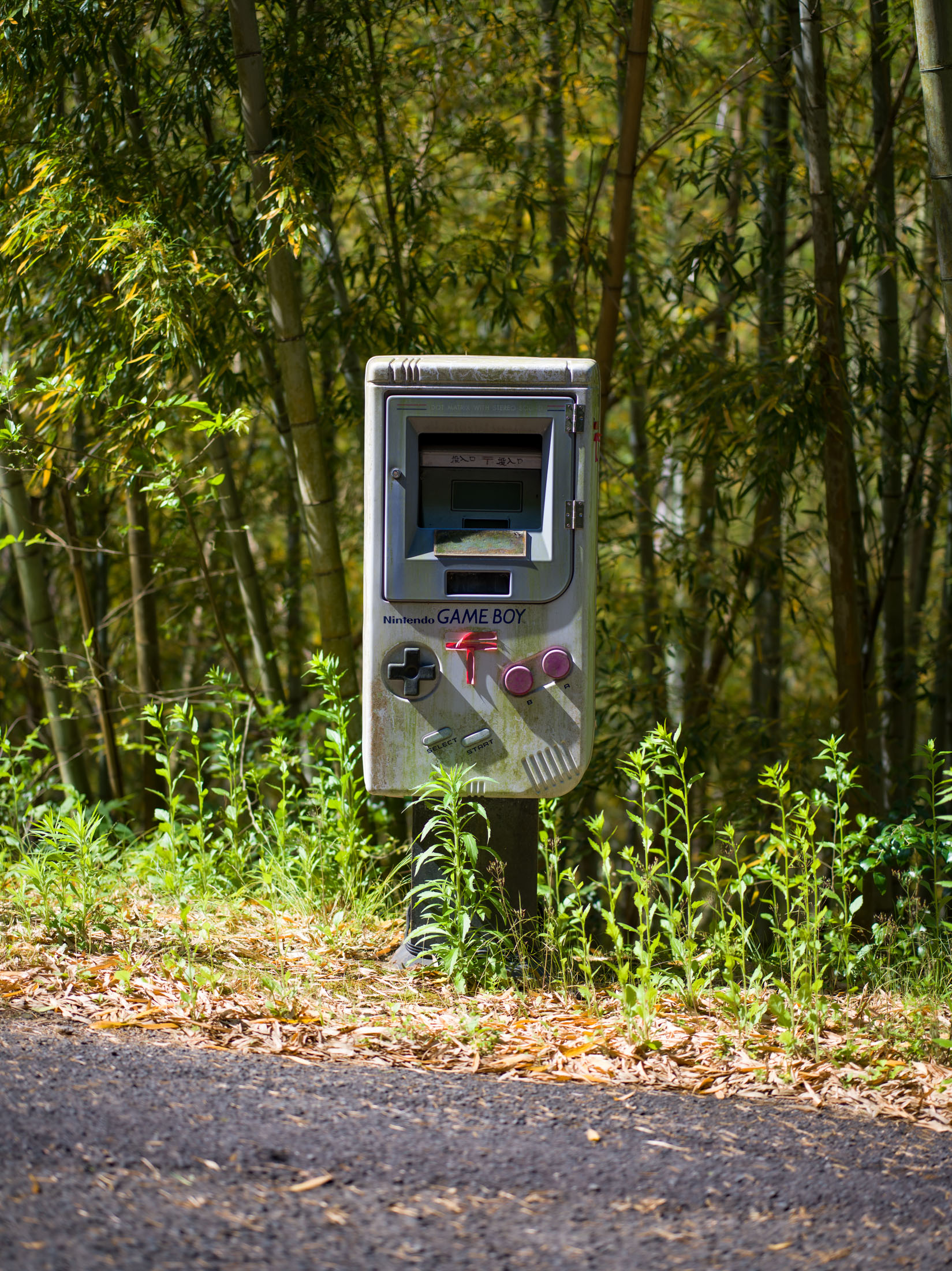 Retro Game Boy Mailbox in a Bamboo Grove
