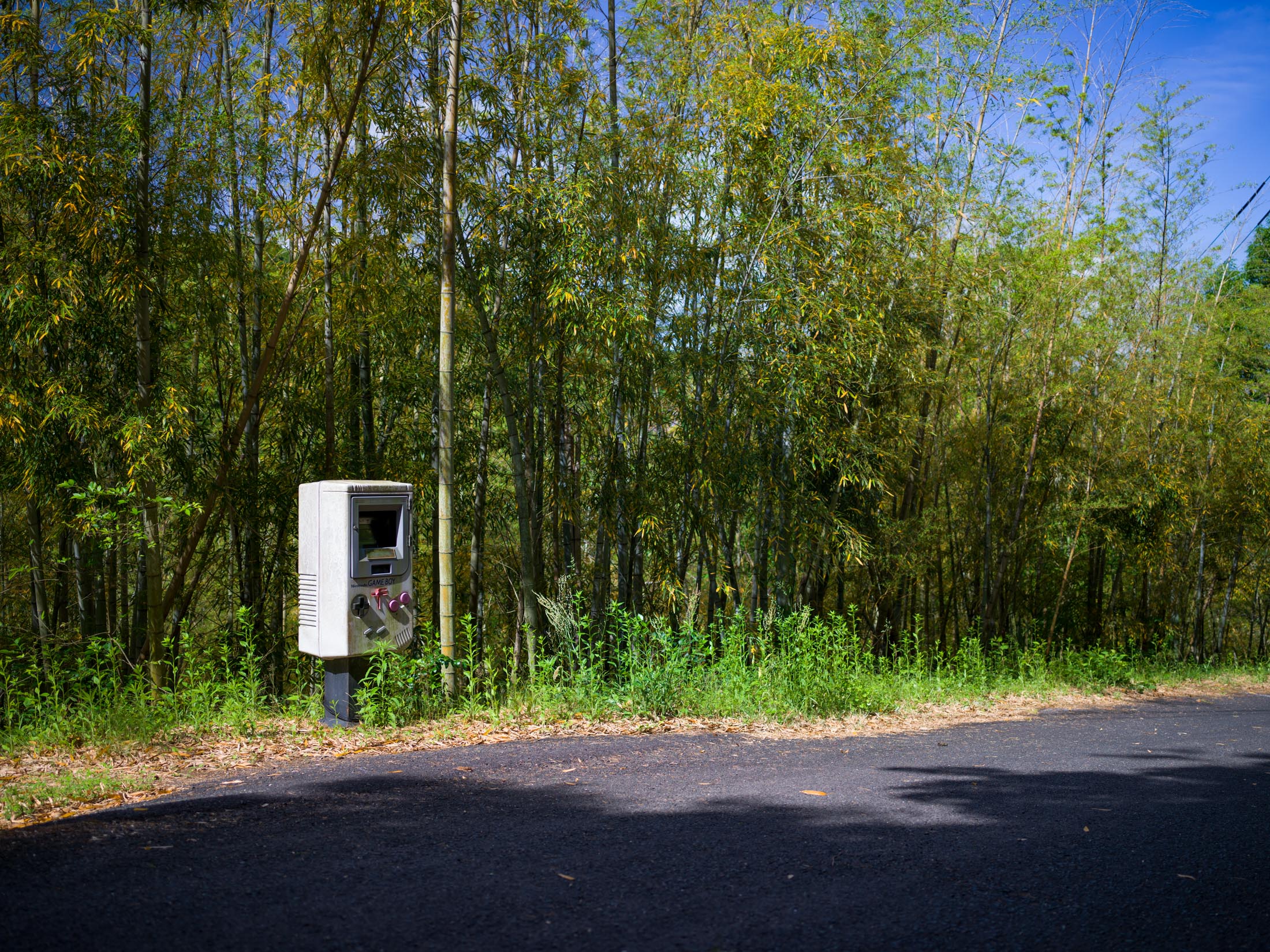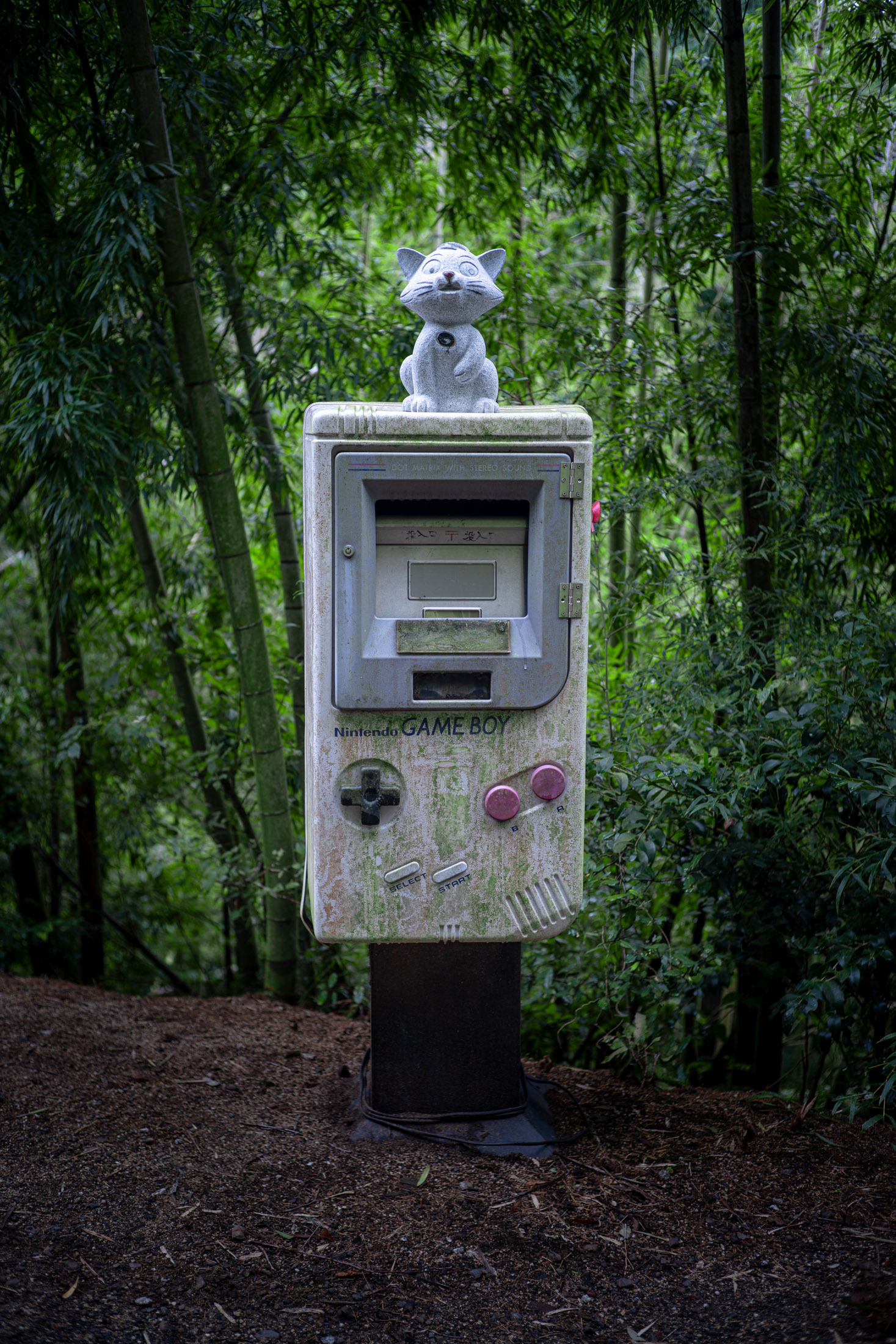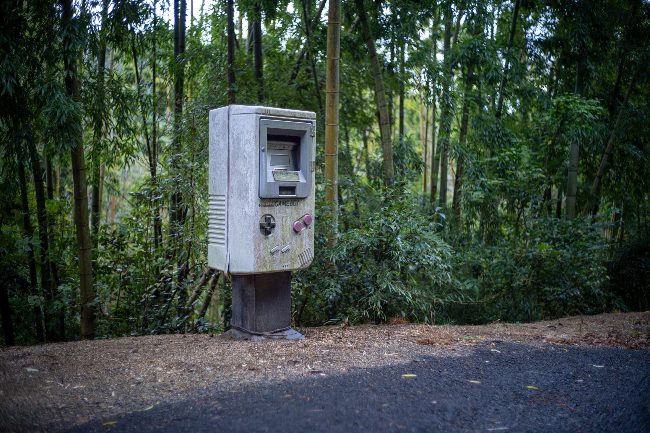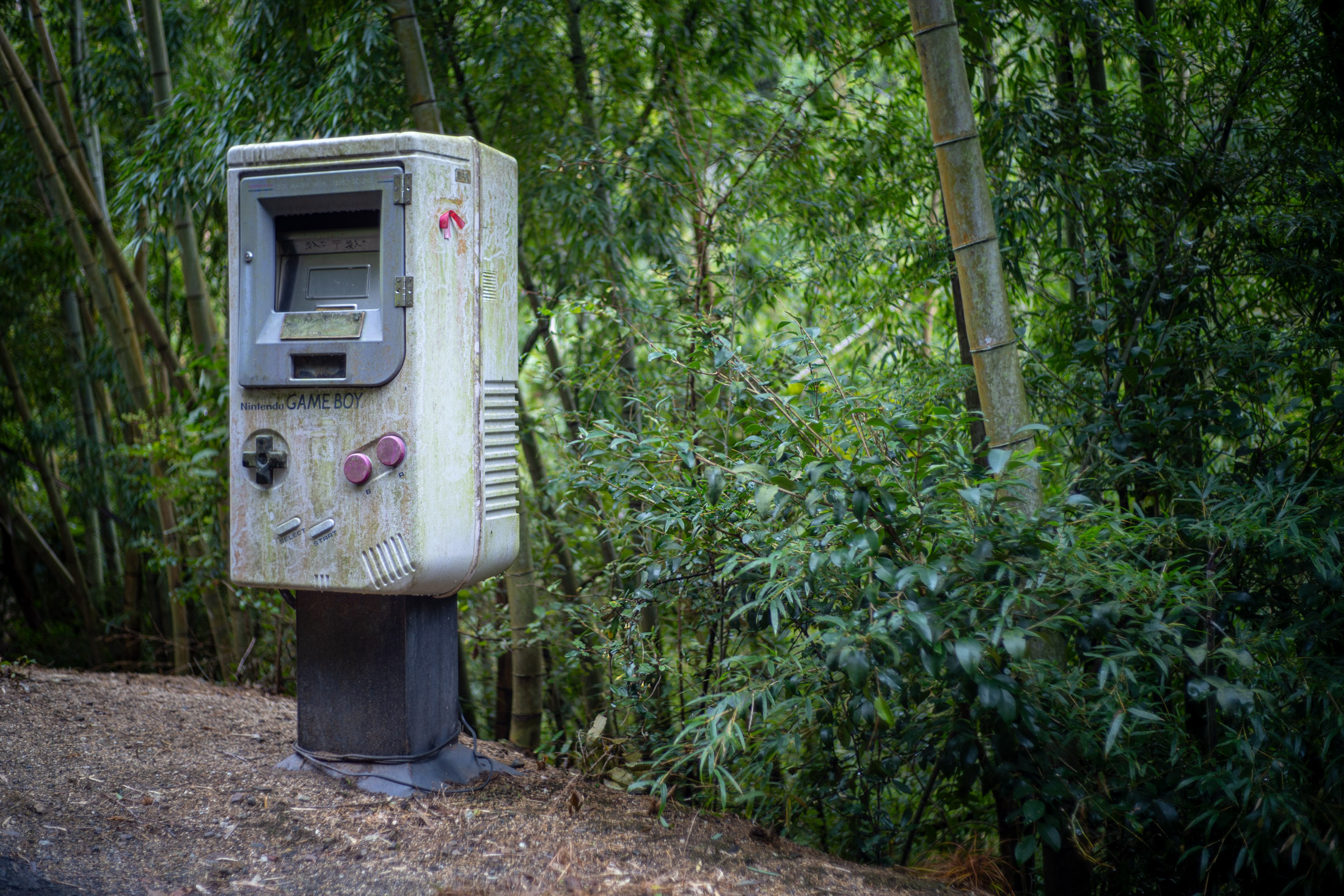 Retro Game Boy Mailbox in a Bamboo Grove